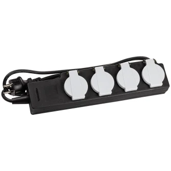 4-vägs med självstängande lock. 1,5 meter gummikabel, godkänd för utomhusbruk.